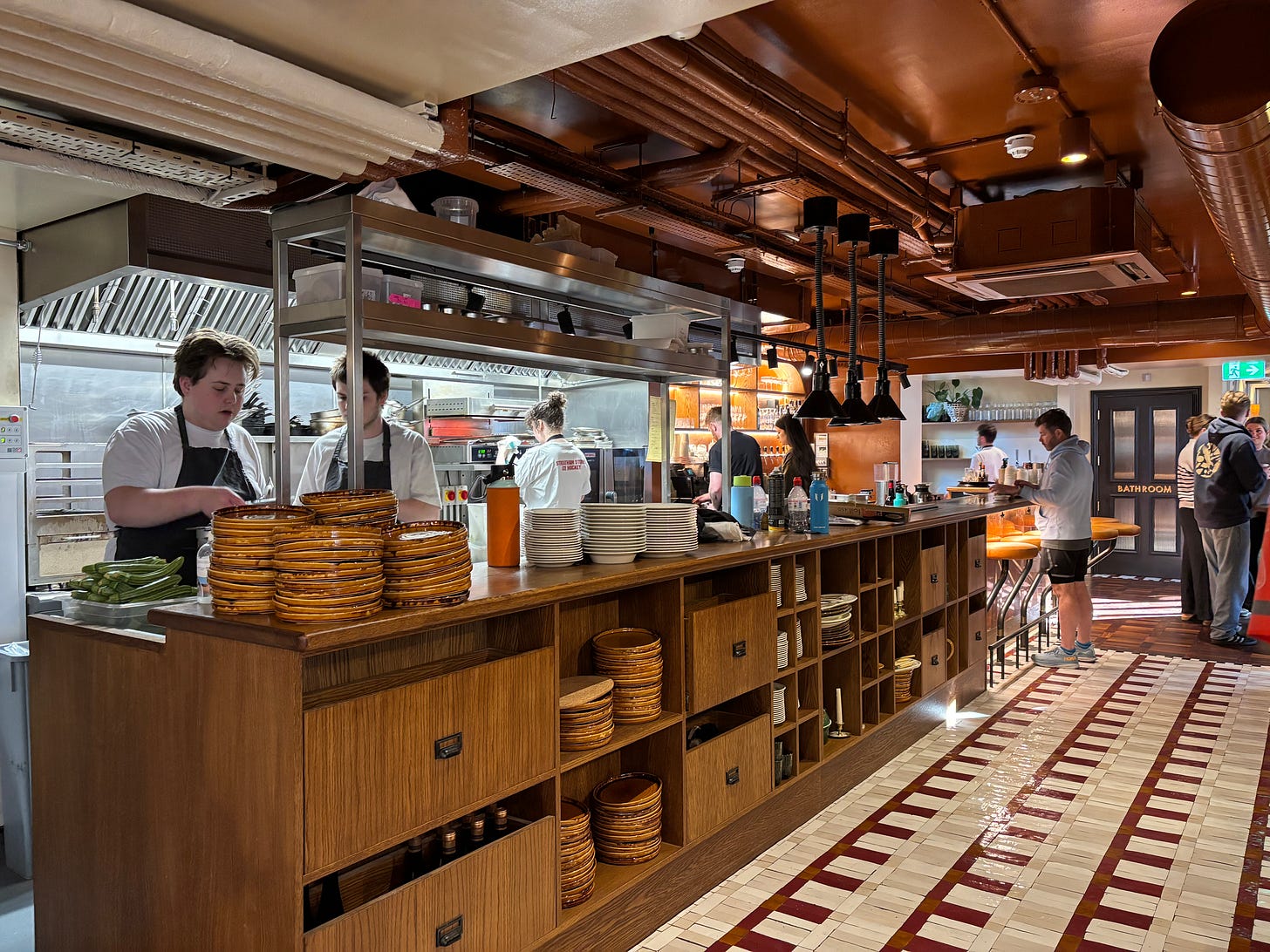 The menu mixes playful surprises with dependable classics. I had perfectly cooked wild bass over buttery Jerusalem artichoke and Swiss chard. The beverages, including beer, wine, cocktails, and digestifs, are just as much a draw as the food. The night we visited, they featured a 2021 Blanc de Blancs from Burn Valley Vineyard right up in Norfolk — a rival to any Champagne. Their list has a selection of alternative “fizzes,” plus reds, whites, oranges, and rosés. There are also four signature concoctions and an equal number of non-alcoholic mixes.